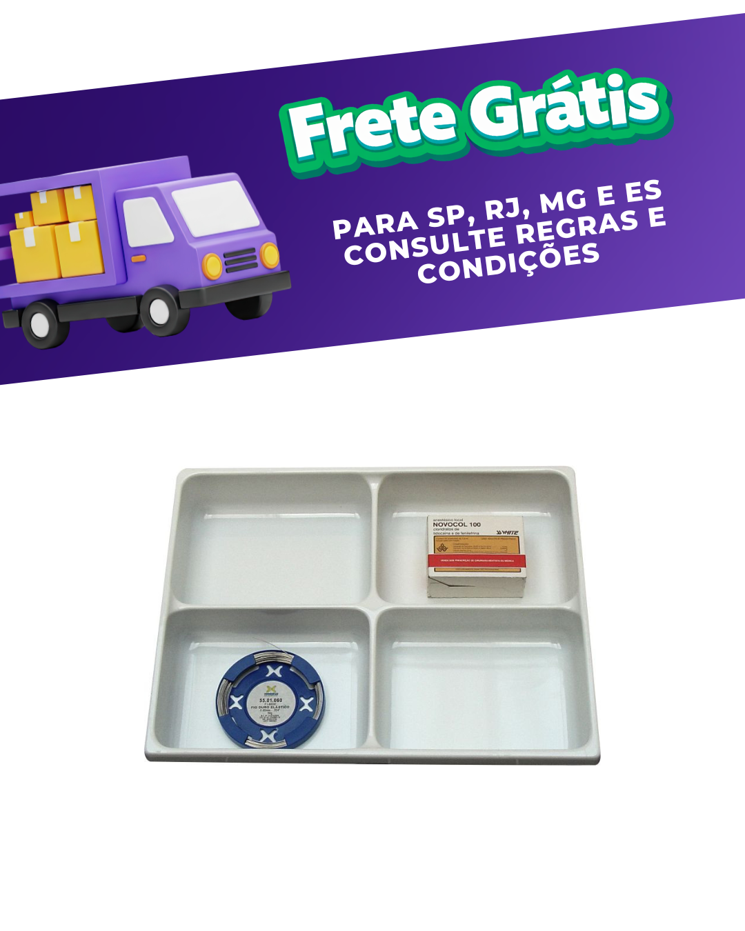 Bandeja odontológica 30204 - Magnum, gaveta odontológica que organiza itens de uso diário, estocados nas embalagens originais. Feita em poliestireno de alta resistência, com 40x30cm, disponível na cor branca. Prática e fácil de limpar. Com 4 divisões para produtos diversos, como caixinhas de agulhas, sugadores descartáveis, anestésico, etc. Tem dupla laminação, o que aumenta a resistência.