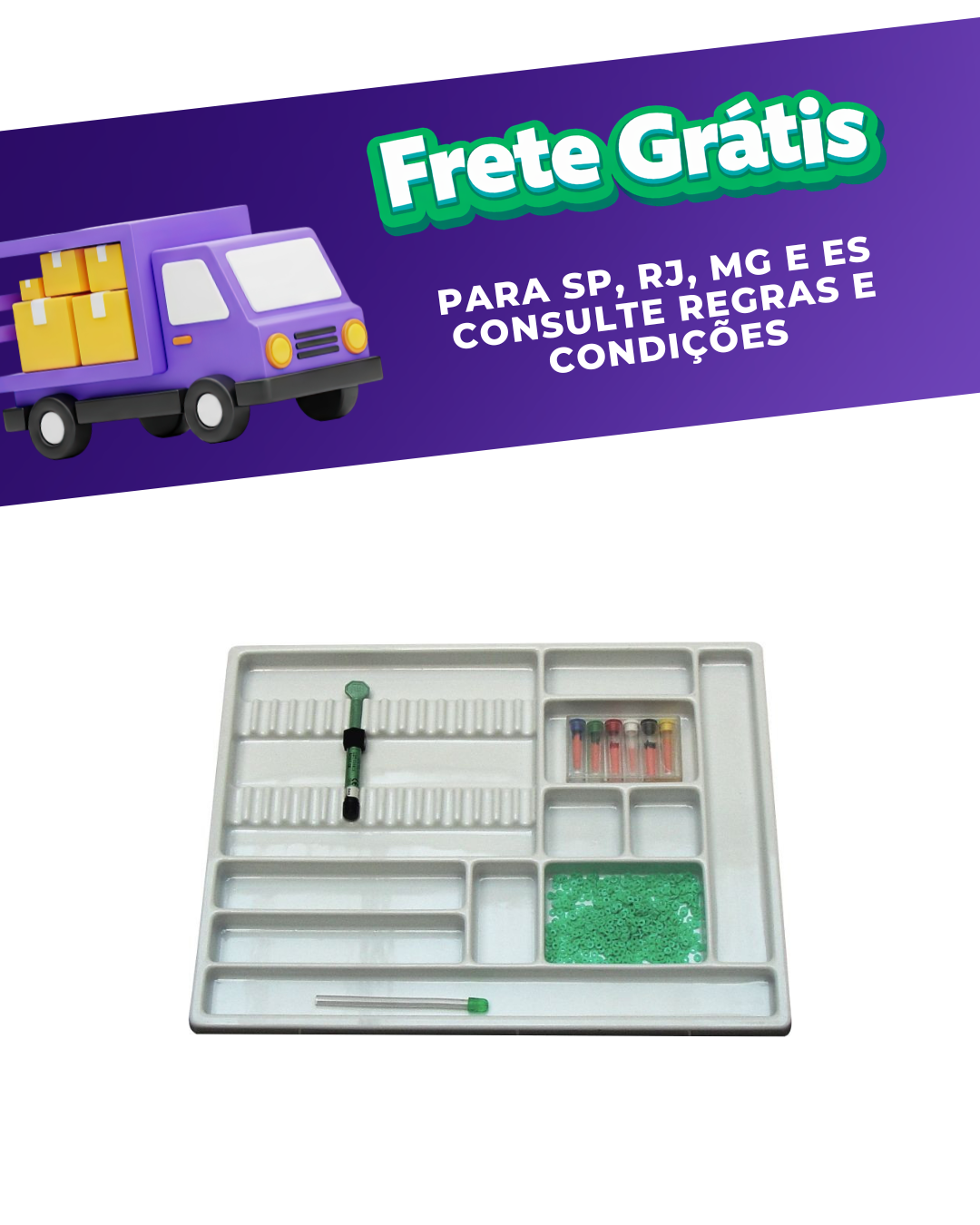 Bandeja odontológica 30211 - Magnum, gaveta odontológica para instrumentos manuais, medicamentos e demais itens, feita em plástico de alta resistência, medindo 40x30cm, disponível na cor branca. Prática e fácil de limpar. Possui 16 divisões para instrumentos e 10 divisões retangulares para medicamentos ou outros produtos de uso odontologico. Com dupla laminação, o que aumenta a resistência a materiais corrosivos.