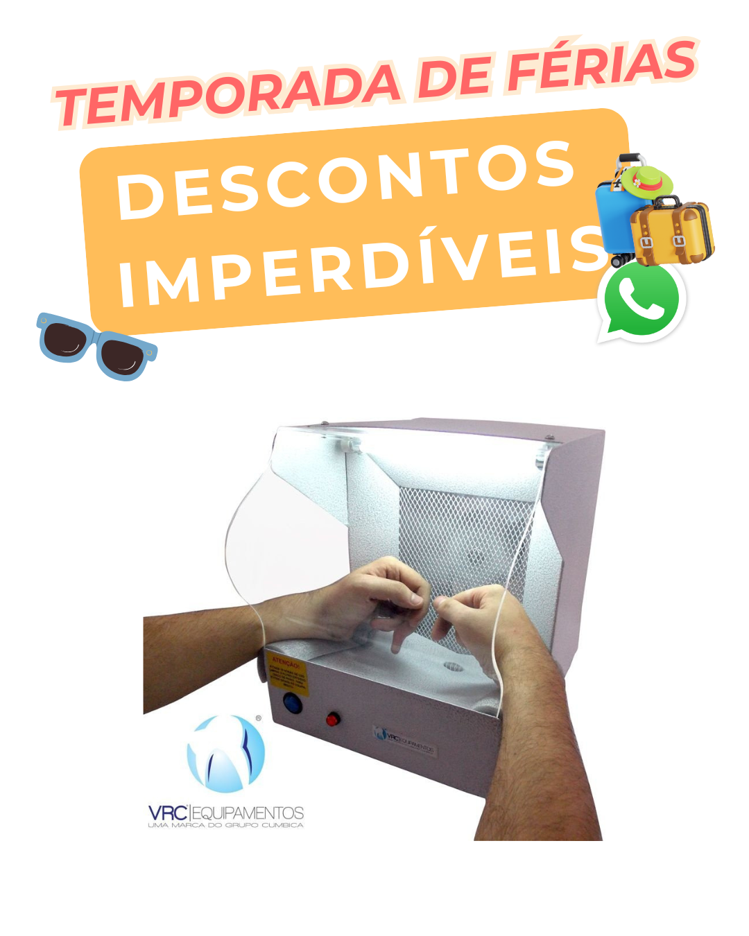 Câmara para desgaste com exaustor e iluminação - Vrc, o Exaustor VRC é um incrível equipamento que se tornou indispensável para os laboratórios, pois de forma muito silenciosa e potente aspira todos os resíduos do trabalho jogando-os num filtro coletor, além de sua incrível potência na aspiração conta também com um protetor em acrílico cristalino, almofadas para maior conforto dos braços e um perfeito sistema de iluminação, é um equipamento verdadeiramente indispensável para laboratórios que preservam a higiene, organização e qualidade nos trabalhos. VRC, só a original evolui.