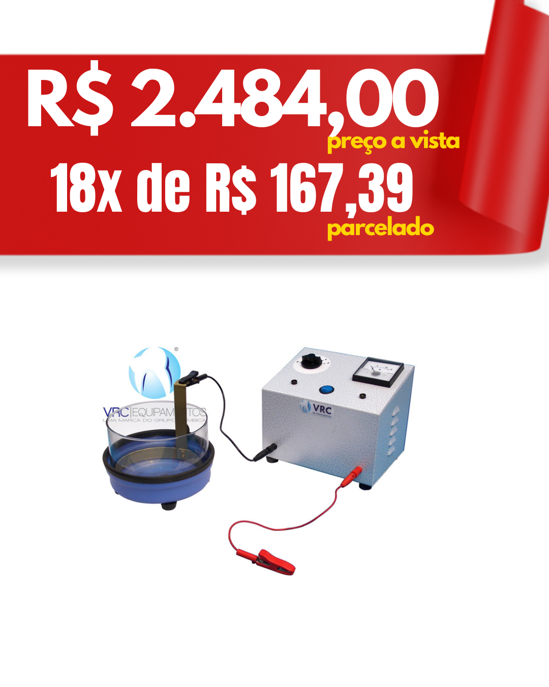 Eletrolítico - Vrc, o Eletrolítico é um equipamento da VRC indicado para realizar limpeza de armações metálicas através de banho eletrolítico e proporcionar um ótimo acabamento. É um equipamento completo que oferece ajuste de potência de 1 a 5 posições, além de apresentar cuba de vidro, suporte de alumínio, presilhas jacaré e cabos de contato.