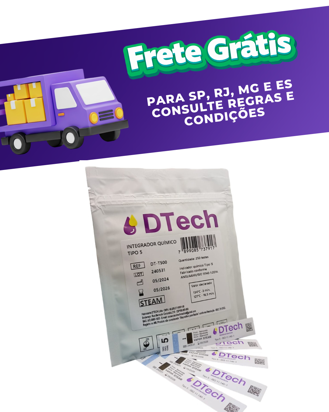 O DT-T500 é um integrador químico Tipo i5 conforme a norma ISO 11140-1:2014 desenvolvido para